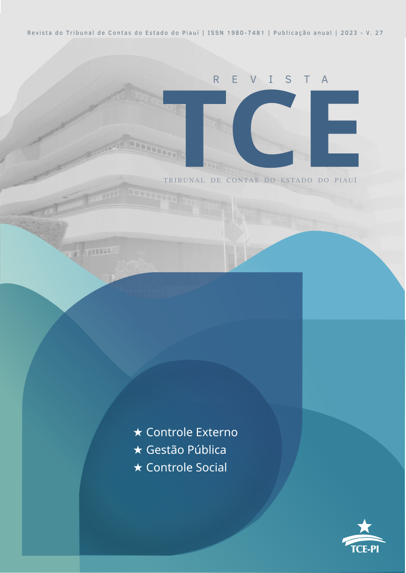 v. 27 n. 1 (2023)A presente edição da Revista do Tribunal de Contas do Estado do Piauí (TCE-PI) traz à tona reflexões e estudos que dialogam com temas fundamentais para a administração pública, o controle interno, as finanças e a gestão pública em diferentes contextos. Os artigos destacam-se pela relevância acadêmica e prática, oferecendo contribuições significativas para o aprimoramento das políticas públicas e práticas institucionais.